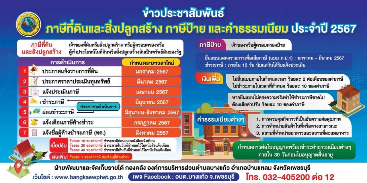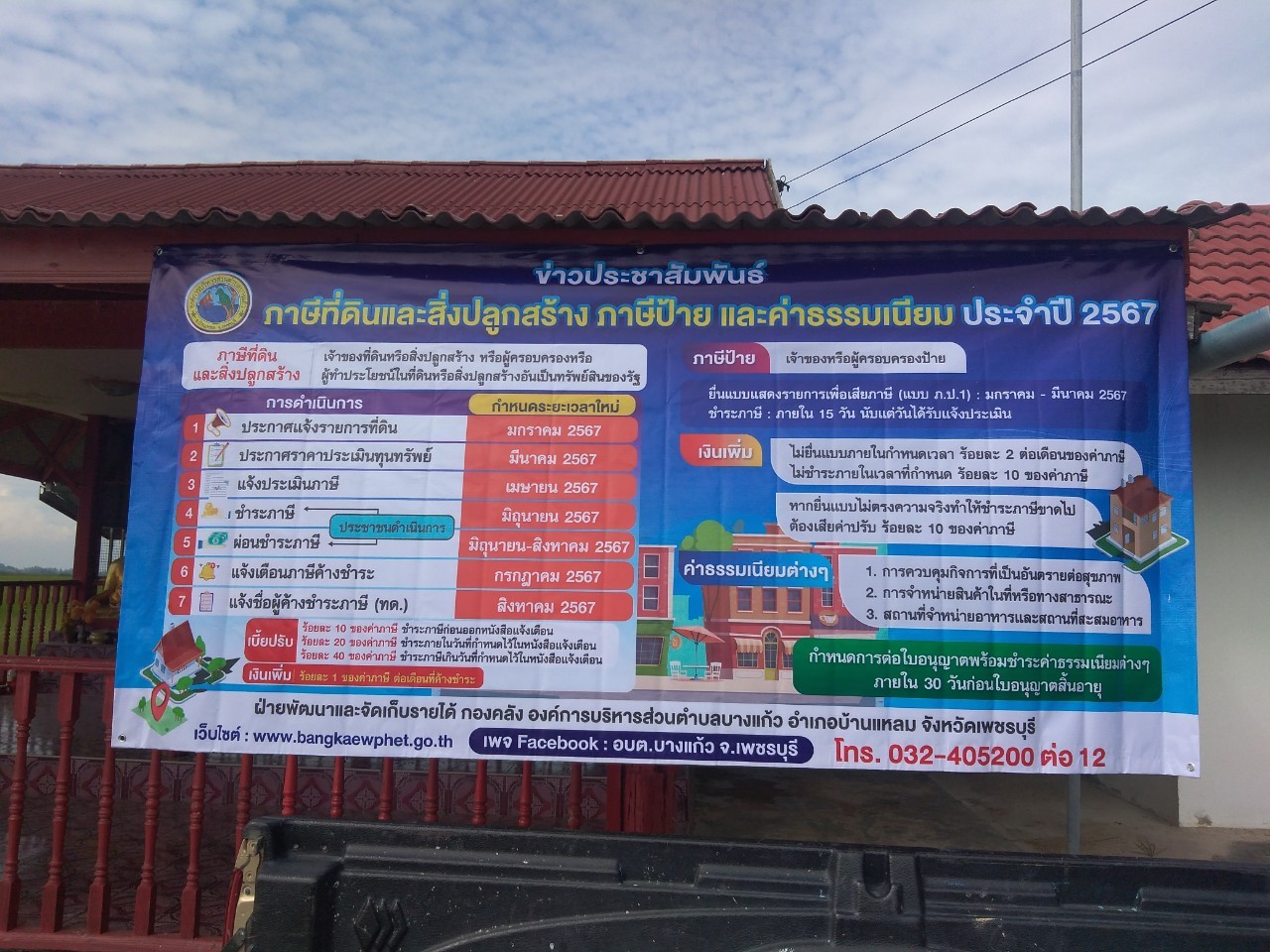 จัดทำป้ายประชาสัมพันธ์ภาษีที่ดินและสิ่งปลูกสร้าง ภาษีป้าย และค่าธรรมเนียมต่างๆ ประจำปี 2567
